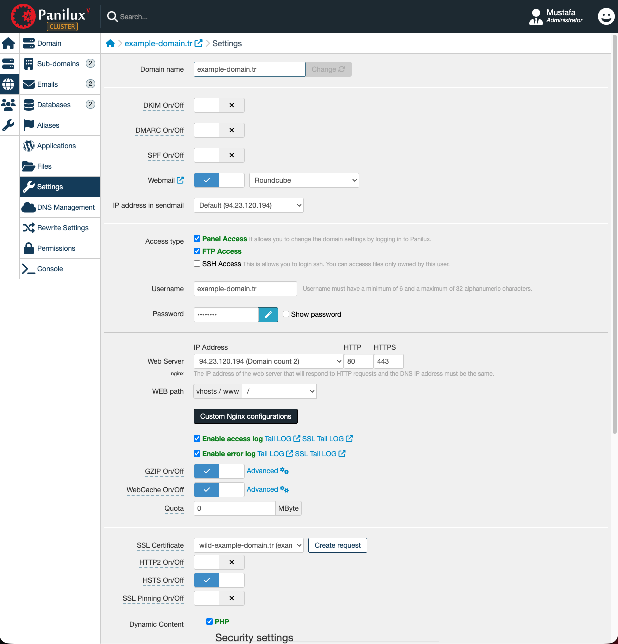 Güvenliği, dilerseniz size özel kontrol paneli adresi üzerinden geçerli SSL ile erişim sağlarsınız.